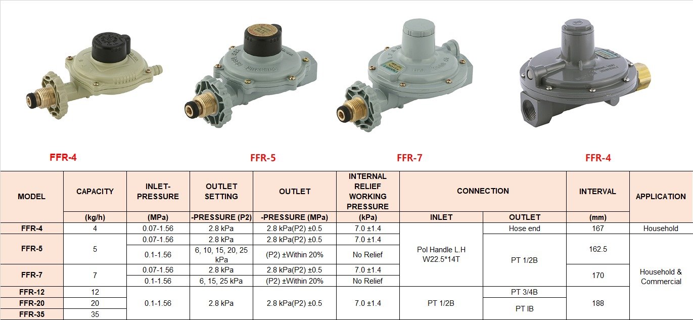 - The compact design of Single-stage regulators makes a convenient connection with gas cylinders. The outlet connection can be selected either hose or PT type which enables connection with the hose or pipe. Moreover, the internal relief valve is equipped in a low-pressure type for safety.