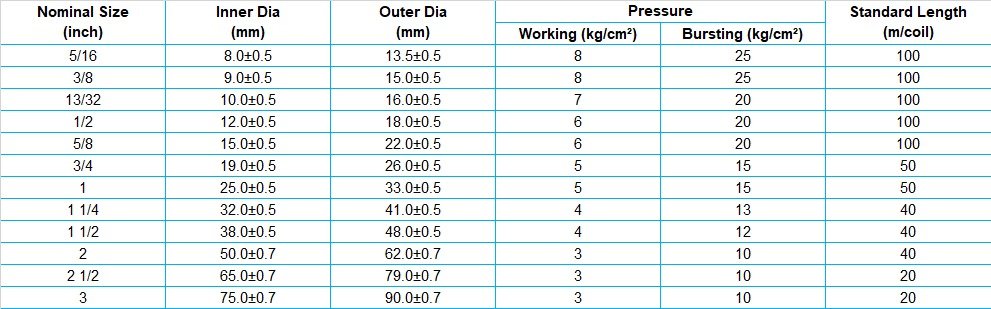 - Prevention of Electrostatic through Specially Strengthened Steel Wires Between Inside and Outside for Higher Flexibility and Internal and External Pressure Resistance